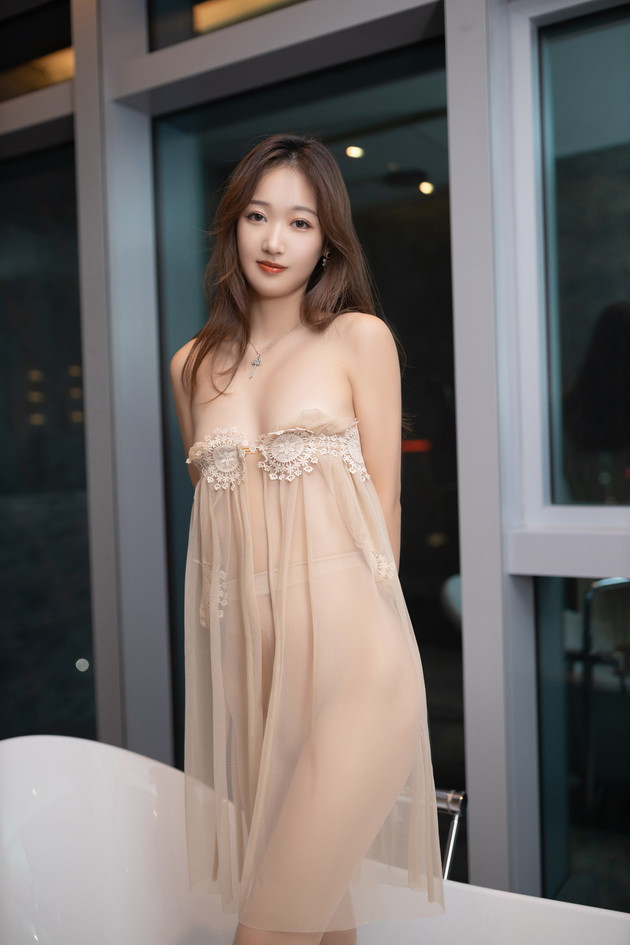 003.唐安琪 – 黄色薄纱轻透连衣长裙[82P-902MB]
